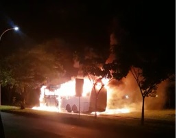 Na madrugada desta sexta-feira (20), um ônibus pegou fogo na Rua Antônio João, próximo ao Batalhão da Polícia Militar, em Ponta Porã.