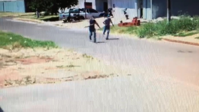 Câmeras de monitoramento flagraram o momento que dois homens chegam a pé, entram armados em uma residência na rua Ptolomeu Cláudio no Jardim Primavera e executam uma pessoa em Ponta Porã.