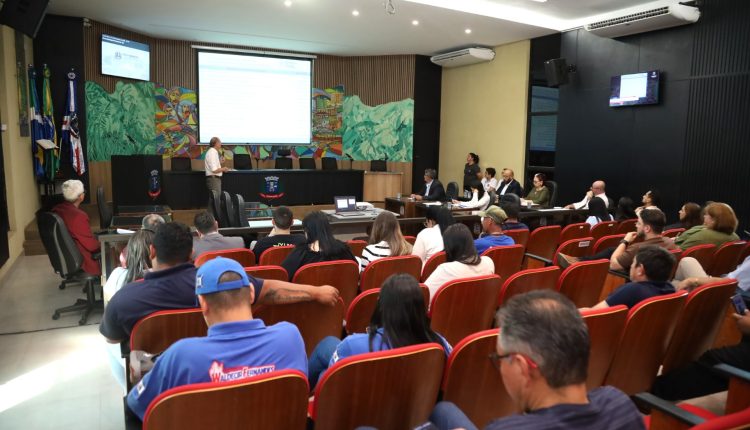 A audiência pública ocorreu no plenário do Legislativo e reuniu vereadores, servidores, representantes da sociedade civil e membros do Poder Executivo.
