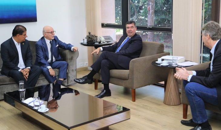 A visita ocorreu esta manhã na governadoria e também reuniu o senador Nelson Trad Filho (Nelsinho Trad) e o secretário Jaime Verruck, da Semadesc (Secretaria de Estado de Meio Ambiente, Desenvolvimento, Ciência, Tecnologia e Inovação).