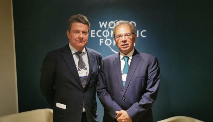 O ministro da Economia, Paulo Guedes, participou de um painel de debates sobre a conjuntura econômica global no Fórum Econômico Mundial (WEF, na sigla em inglês), em Davos, na Suíça.