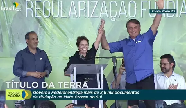A ministra da Agricultura, Pecuária e Abastecimento, Tereza Cristina, participou na manhã desta terça-feira (29), do evento da entrega de título de propriedade rural a famílias do distrito de Nova Itamarati, em Ponta Porã, ao lado do presidente Jair Bolsonaro (PL), e anunciou que está deixando a pasta.