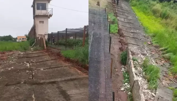 O muro lateral do Estabelecimento Penal Ricardo Brandão, em Ponta Porã, desabou na tarde dessa quarta-feira (6/11), apesar do alerta dos servidores.