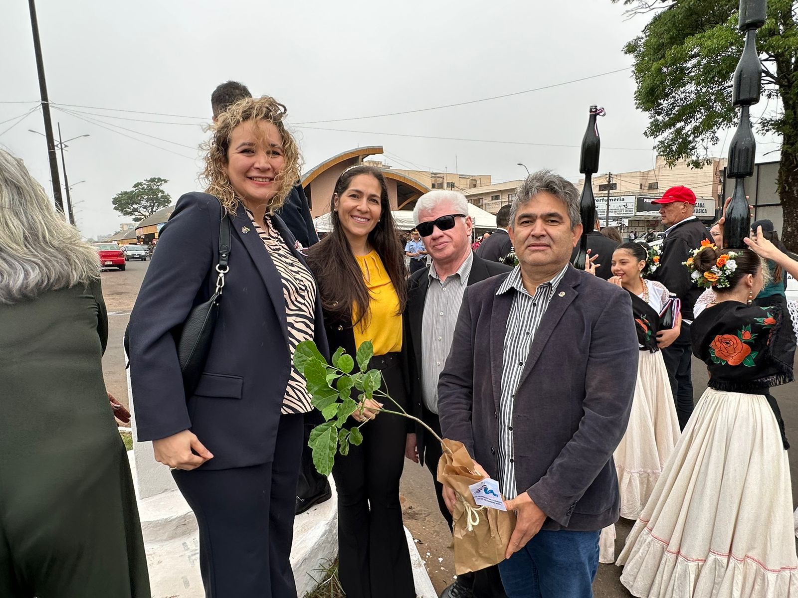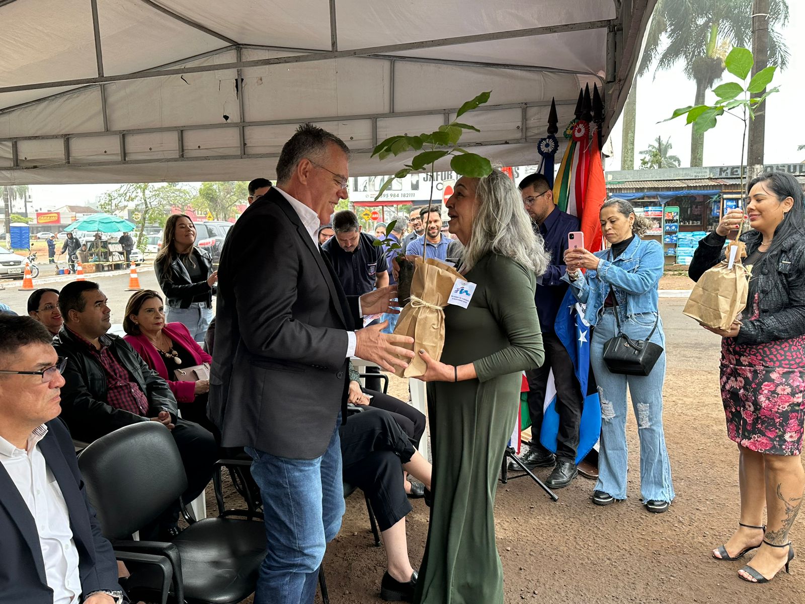 Os dois prefeitos receberam mudas de árvores nativas distribuídas pelo Grupo Binacional de Turismo, que simbolizou a geração de emprego, com uma semente plantada e que crescerá e se multiplicará.