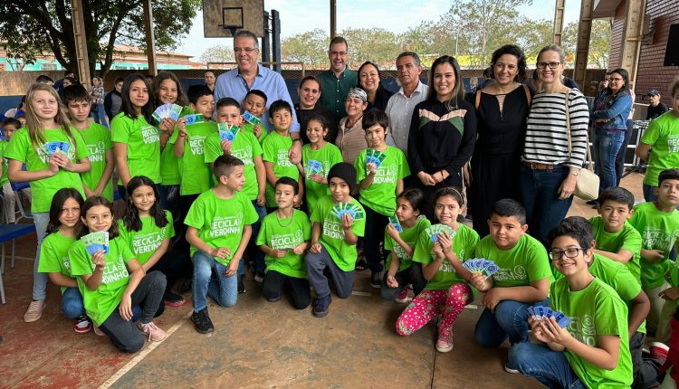 O prefeito Eduardo Campos esteve na Escola João Carlos Pinheiro Marques, recebeu o carinho dos alunos e falou sobre a importância do Recicla Verdinho.