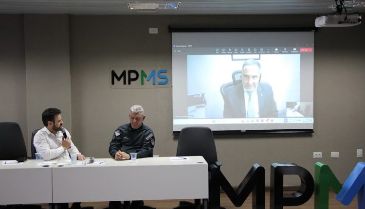 À noite, o auditório das Promotorias de Justiça de Dourados recebeu um painel de debates, com apresentações de representantes da Polícia Militar e da Polícia Penal sobre a criminalidade nas fronteiras.