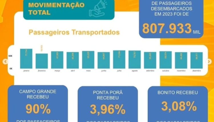 Dados fornecidos pela Alumia, plataforma especializada em análise e fornecimento de informações para empresários e gestores de Mato Grosso do Sul, divulgados na segunda-feira (8/4), revela que o município de Ponta Porã foi o segundo destino mais procurado por via aérea no Estado em 2023. Representando aproximadamente 4% de todos os passageiros aéreos, 32 mil pessoas escolheram a cidade que faz fronteira com o Paraguai.