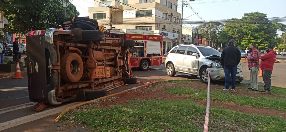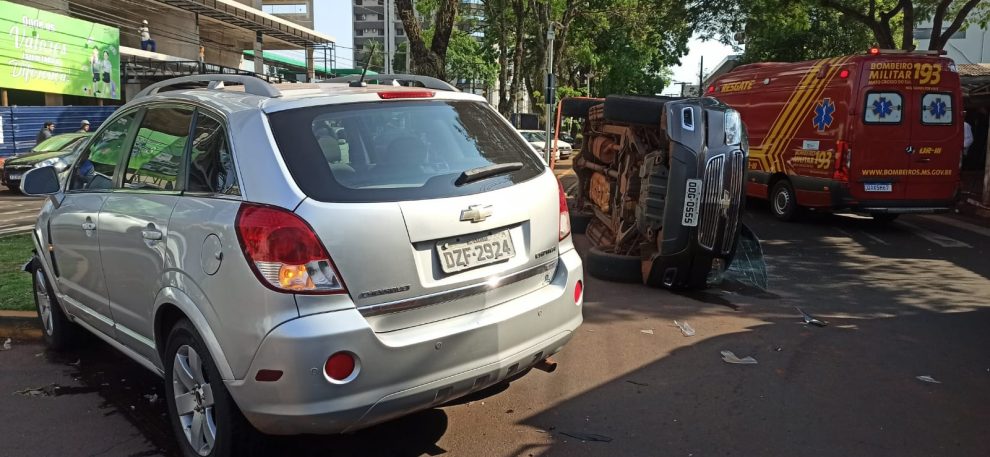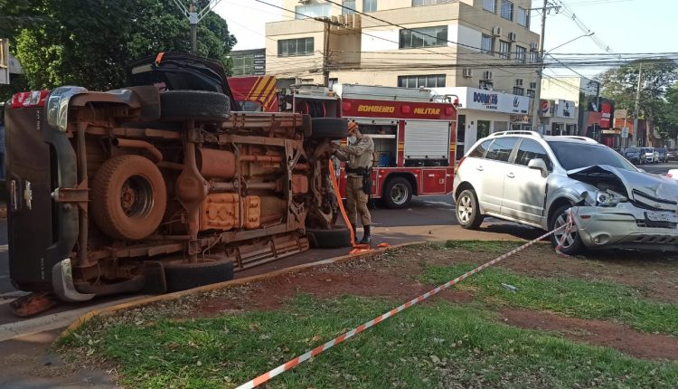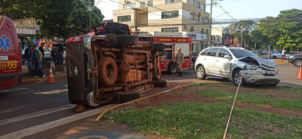 Na manhã desta quarta-feira (31), casal ficou preso no interior de uma caminhonete S10, placas de Ivinhema, após colidir com um veículo Captiva, de Amambai, na rua João Rosa Góes com a avenida Weimar Gonçalves Torres, em Dourados.