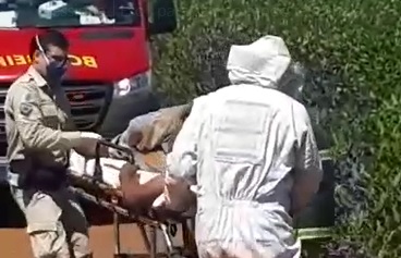 Após abordagem ao Luciano foi constatado que ele estava sem resposta motora, com dificuldade de respirar e desorientado devido à enorme quantidade de picadas de abelha.