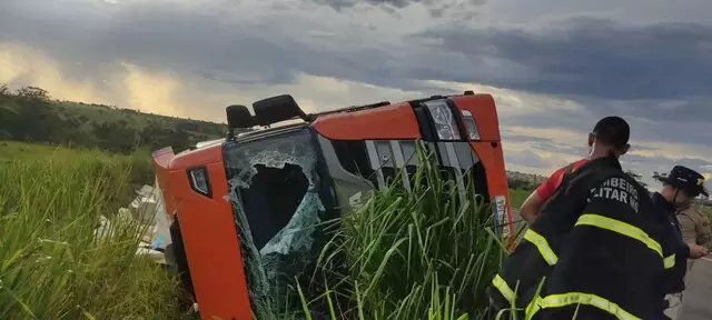 Carreta com carga de hambúrguer tomba às margens de rodovia