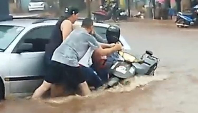Em duas horas de chuva, Pedro Juan Caballero e a cidade brasileira de Ponta Porã foram afetadas neste domingo (18), por fortes enchurradas corredeiras, assim como algumas pessoas que passavam pelas ruas.