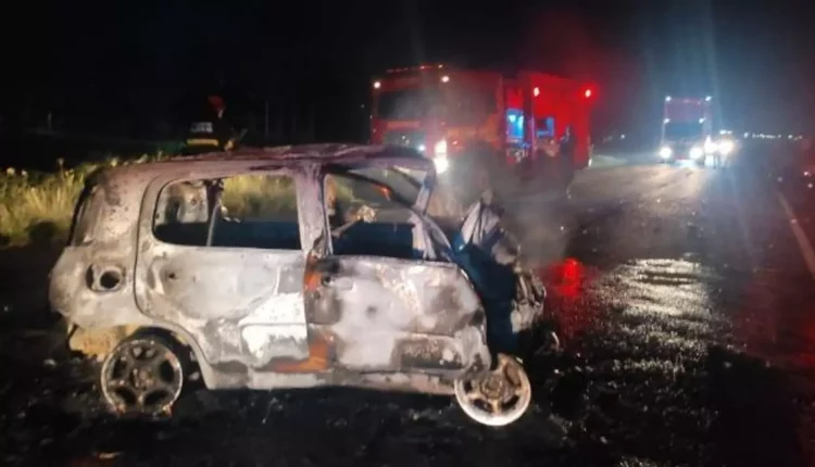 Com o impacto, o carro pegou fogo e a vítima morreu carbonizada.