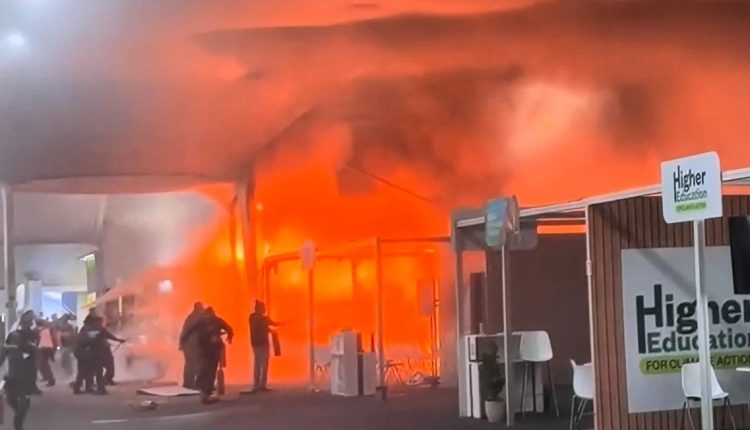 A zona azul é o espaço onde se reúnem os negociadores e ministros. Celso Sabino, ministro do turismo, estava na Blue Zone e saiu às pressas. Ele afirmou que as equipes de segurança estavam tomando as medidas necessárias para controlar as chamas e aconselhou que a imprensa se retirasse do local.