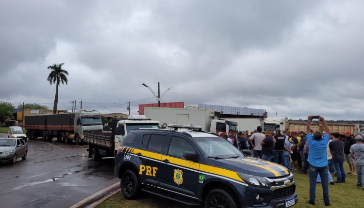 Caminhoneiros e eleitores fecharam a BR-163, com a 463, em Dourados, no trecho conhecido como ‘Trevo da Bandeira’. A reportagem está no local e registra longas filas de caminhões e carros de passeio.