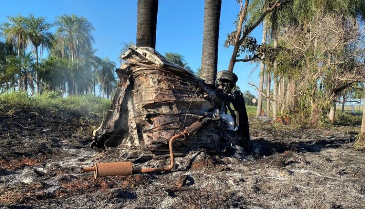 Motorista ainda não identificado, morreu carbonizado nesta terça-feira (11), na BR-267, em Jardim. Ele perdeu o controle do carro que conduzia, saiu da pista e bateu num coqueiro.