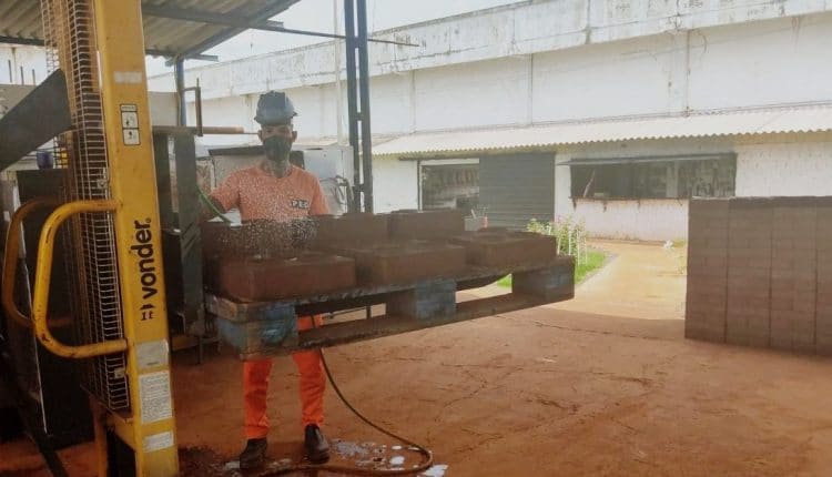 Pedro Henrique é um dos três internos que trabalham nesta oficina e informa animado como é o dia a dia do serviço. “Peneiramos a areia, a terra e colocamos cimento, jogamos na betoneira, depois tritura na máquina, passa na dala e depois vai para prensa, e aí começa o processo de cura, aguando o tijolo durante sete dias”, detalha empolgado, reforçando que os tijolos podem ser utilizados em vários tipos de edificações.