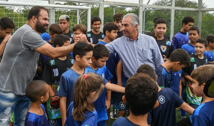Reinaldo Azambuja também entregou a primeira arena esportiva do Programa MS Bom de Bola, instalada ao lado do ginásio de esportes. Ao chegar ao local, encontrou um grupo de garotos que integram projetos de iniciação esportiva da cidade e disse: “vamos jogar bola, gurizada?”. Em seguida, conheceu o gramado sintético do campo de futebol soçaite, chutou uma bola a gol e fez arremessos na quadra de basquete de três.