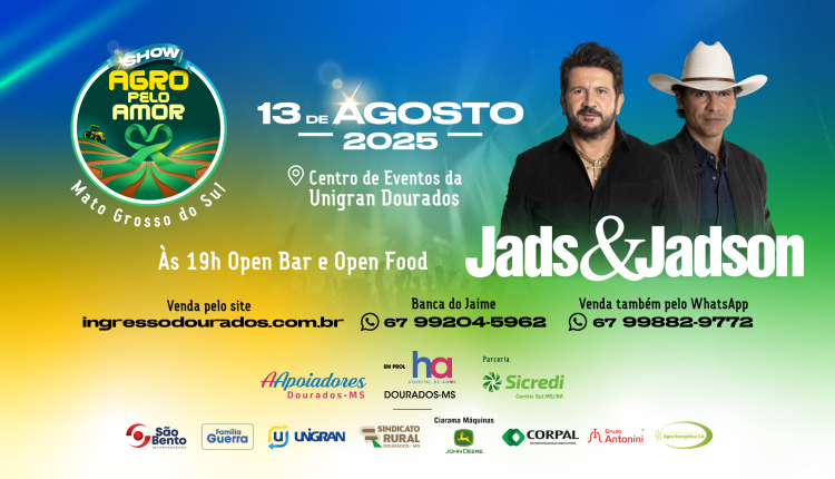 No próximo dia 13 de agosto de 2025, o Centro de Eventos da Unigran em Dourados será palco de uma noite especial em prol da saúde e da vida. A consagrada dupla sertaneja Jads & Jadson se apresenta em um show beneficente, cuja renda será revertida para a aquisição de equipamentos, mobiliário e tecnologias para o Hospital de Amor de Dourados.