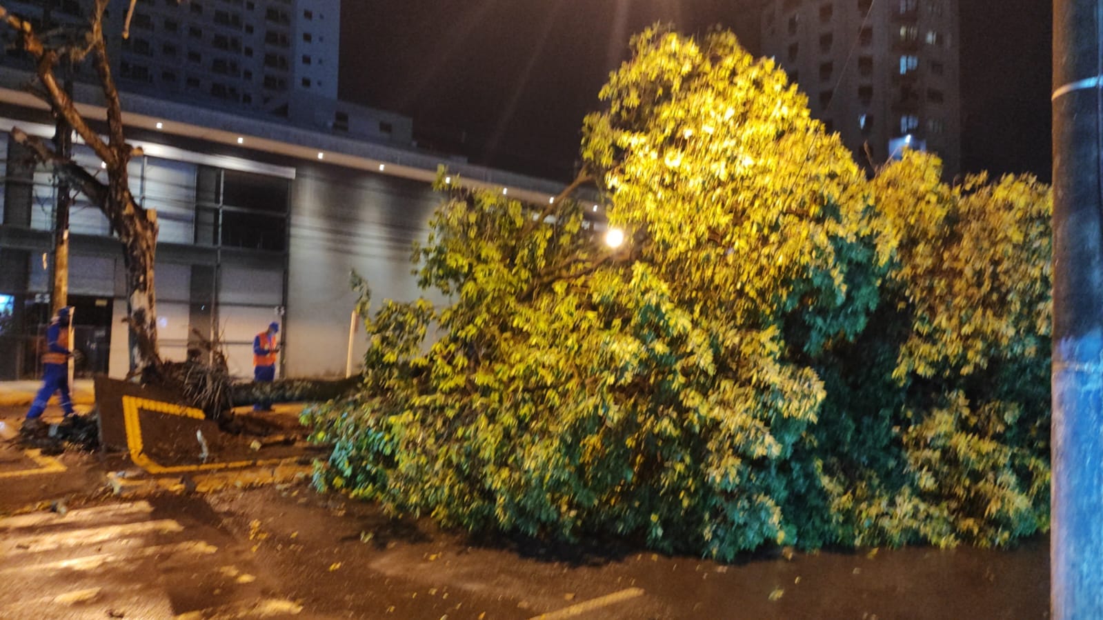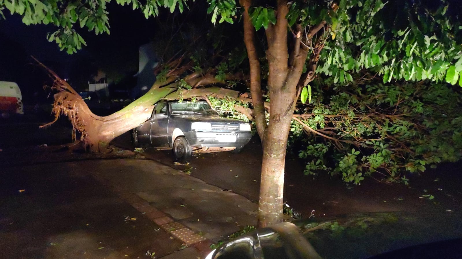 Além disso, carros foram atingidos por árvores que não resistiram à força do vento. No Bairro Parque Alvorada, o gesso do teto de uma igreja católica cedeu. No CSU que fica no Jardim Água Boa, a quadra de esportes que funciona temporariamente como salas de aulas para alunos da Escola Estadual Vilmar Vieira de Matos, foi tomada pela água.