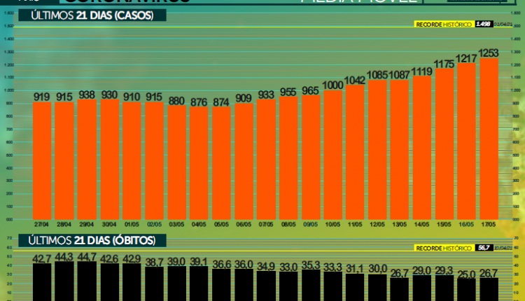 A média móvel indica que na última semana houve a confirmação de 1.252,9 casos diários no Estado.