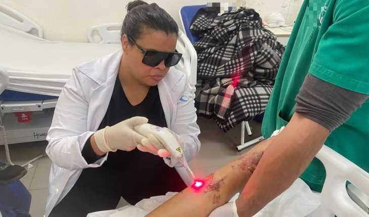 “O processo de laserterapia é de suma importância na recuperação dos nossos pacientes, principalmente durante o pós-operatório, quando os curativos precisam ser realizados de forma adequada para favorecer a cicatrização. Essa conduta tem como principal objetivo acelerar a recuperação e reduzir o uso de analgésicos, garantindo assim a integridade física do paciente”, explica a enfermeira Letícia Tavares, da Clínica Médica Pré-Cirúrgica, responsável pela aplicação do procedimento.