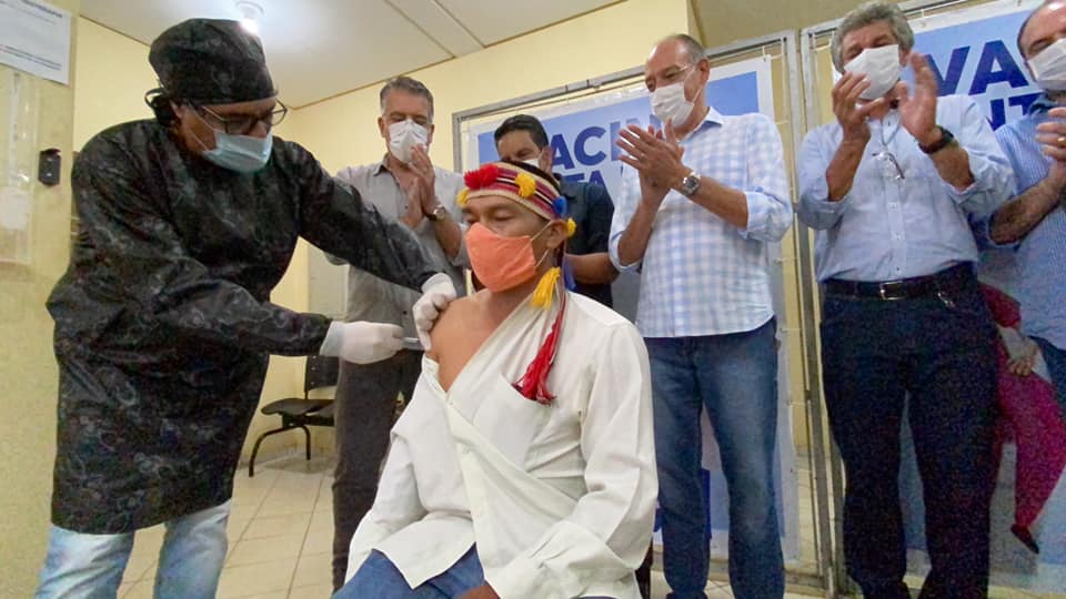 Num ato simbólico, três pessoas foram vacinadas hoje (19), em Ponta Porã. O primeiro a receber a dose da Coronavac foi um indígena, residente na Aldeia Lima Campo.