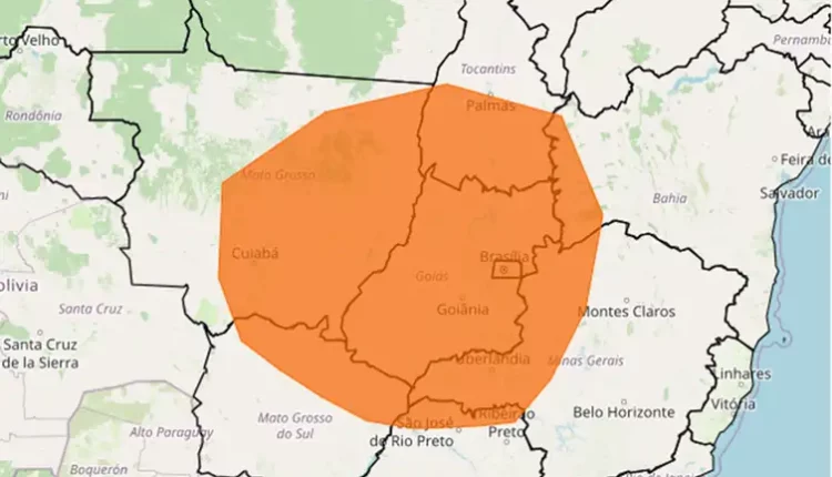 O alerta entra em vigor às 13h de hoje e se encerra às 18h. O aviso cobre todo o Distrito Federal, além o Leste, Centro, Norte e Noroeste de Goiás. Estão sob alerta ainda o extremo Oeste da Bahia, o Noroeste de Minas, as regiões Oriental e Ocidental do Tocantins, além do Nordeste mato-grossense.