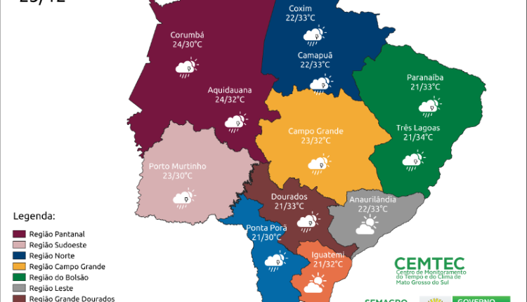 O domingo (25), de Natal será de tempo instável. As pancadas de chuva devem se fazer presente nas reuniões de família e amigos em todas as áreas de Mato Grosso do Sul.