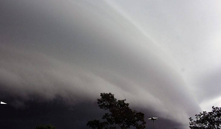 A passagem de uma frente fria espalha nuvens carregadas que provocam ventos fortes e muita chuva para diversas regiões de Mato Grosso do Sul.