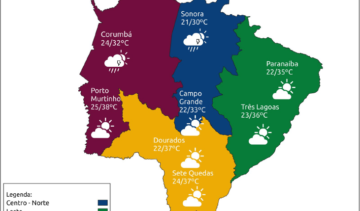 O forte calor associado a umidade pode favorecer a formação de pancadas de chuva com tempestades em áreas isoladas. Na região norte do Estado, especialmente entre os municípios de Sonora e Pedro Gomes, o Cemtec indica chuvas de intensidade moderada a forte e tempestades acompanhadas de raios.